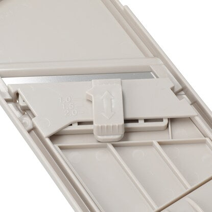 3種のスライスがこれ1つで作れる! スライサー裏面のつまみを切り替えると用途に合わせて3段階の厚みに調整できます。 ※厚み調整(約):1mm、1.5mm、2mm■品質表示 刃部:ステンレス刃物鋼 本体:ABS樹脂(耐熱温度:90℃) ホルダー:ポリプロピレン(耐熱温度:110℃)食洗機:使用可 ※「デコホーム」は、ニトリから生まれたインテリア雑貨のお店です。普段使いの日用品からお部屋のアクセントになるアイテムまで品質やデザインはもちろん、お手軽な価格で取り揃えています。