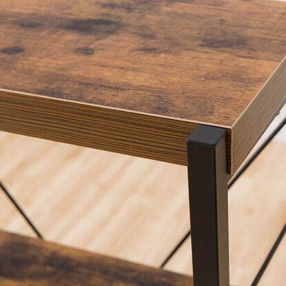 無機質でクールなダメージ風天板とスチール脚の組み合わせ。