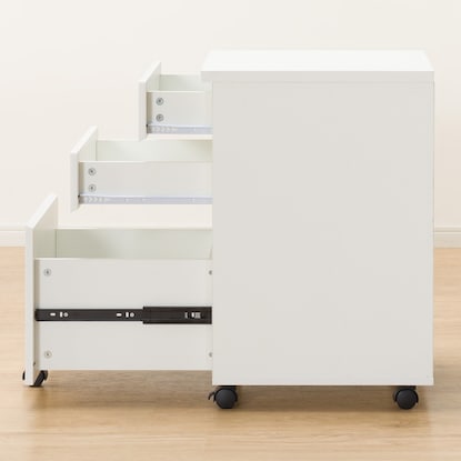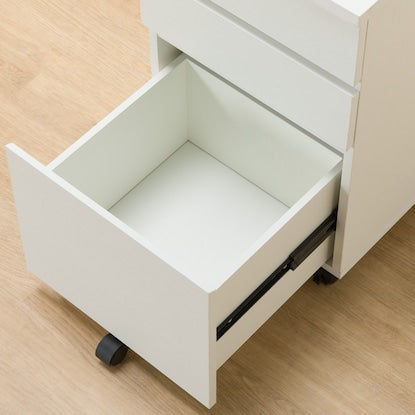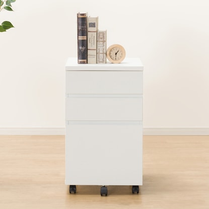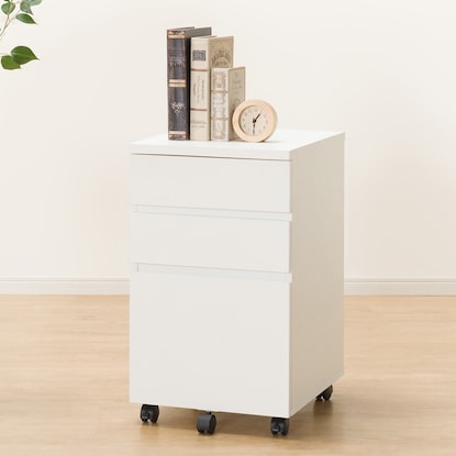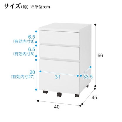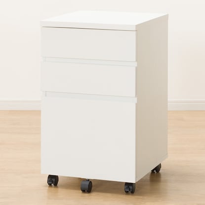 組み合わせいろいろ。 さまざまな用途でお使いいただける【プレフェ】シリーズのワゴン。ワゴンは高さが約66cmあるので、デスクと組み合わせワークスペースとしても便利。 キャスター付きなので移動も簡単です。 【プレフェ】シリーズのデスクは5タイプx4色、脚は6タイプあるのでお好みの組み合わせで自分だけのワークスペースを作れます。【詳細サイズ】 ■引出し内寸 1-2段目:幅31×奥行き33.5×高さ6.5(有効内寸8)cm 3段目:幅31×奥行き33.5×高さ20(有効内寸27)cm