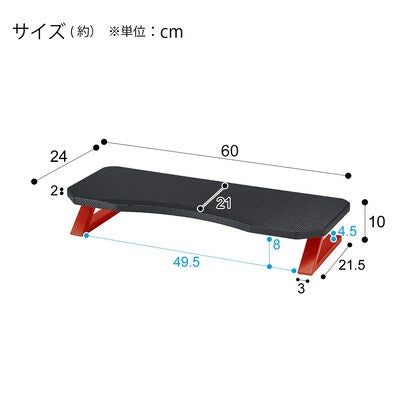 モニター台は23.8インチまでのモニターなら幅内に収まり、脚間は49cmで大型ゲーミングキーボードも収納可能。