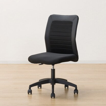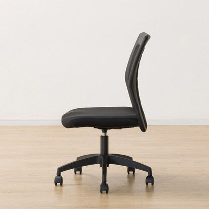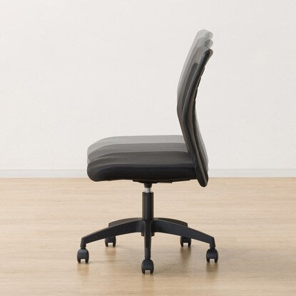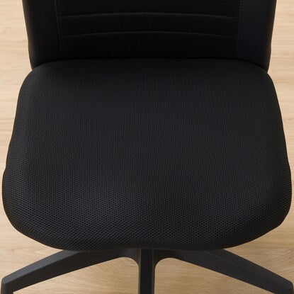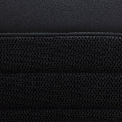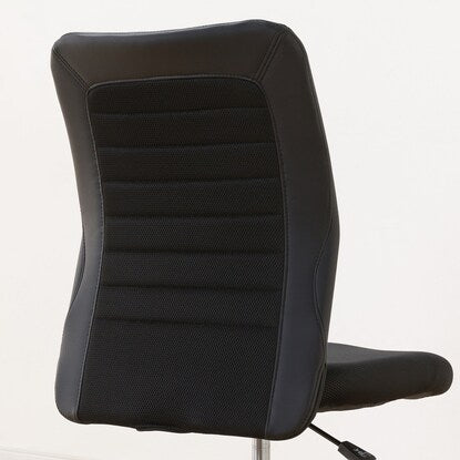 背中にフィットするくの字の背もたれは、通気性の良いメッシュ素材。