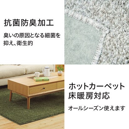 抗菌防臭加工付きで臭いの原因となる黄色ブドウ球菌の増殖を抑え防臭しますまた床暖房・ホットカーペットにも対応!寒い冬でも素足で歩いて、ぽかぽか暖かく、気持ち良い。