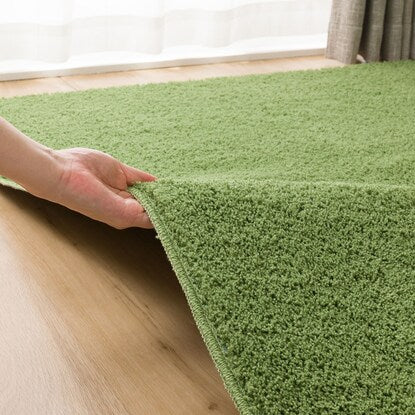 ※実際のサイズ・色・構造 等を保証するものではありません ARについての詳細はこちら※画像はイメージです。185×185cmサイズを使用。 花粉が付きにくいのに、 毛足は長くやわらか 毛足が長く、やわらかいので寝ころがっても気持ちいい♪ 4色から選べます。 気になる花粉、ホコリや汚れも お手入れ簡単・快適 ※自社調べ。加工した本製品と未加工の製品にホコリを付着させた後、 掃除機で吸引。黄色くみえるのが疑似ホコリ(黄色いタオル素材) ふだんのお手入れは、掃除機や粘着クリーナーで! 丸洗いできます 軽いから持ち運びもラク。コインランドリー等の大型洗濯機で洗えます。 洗濯しても効果持続! 約3帖(200×240cm)■組成 表生地:ポリエステル100% 裏生地:不織布 ポリエステル100% ヘム(ふち):ポリエステル100%※10kg以上洗える大型洗濯機で洗ってください。 ※洗濯ネットをご使用ください。※お取り扱い上のご注意 ご使用環境やご使用方法により塩化ビニル・フローリング等、床材の変色が起こることがあります。 このため、長期間敷いたままでのご使用はさけ、月に数回の陰干しをしてください。特に新築の床材・ワックス掛け後はご注意ください。 開封直後は素材特有のにおいがあります。気になる場合は、風通しの良い場所で半日ほど陰干しをおこなってください。においが軽減されます。 パッケージの形状でしばらくは折りじわが発生します。2~3日程度でなじみますが、つまずき等の転倒にご注意ください。 床暖房の種類によっては、ご使用いただけない場合があります。お使いの床暖房の取扱説明書をご確認ください。場合によっては製品・床材の変色など起こることがあります。長時間敷いたままでのご使用はさけてください。 ※こちらの商品は別売りです。 ※ラグサイズに合わせたカットが必要となります。 下敷き専用 低反発ラグパッドはこちら