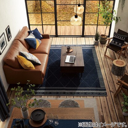 約1.5帖(130×185cm)さらっとした肌ざわりのジャガード織り 手洗いOK 床暖房・ホットカーペット対応 滑り止め加工(裏生地)■組成 表生地:ポリエステル100% 裏生地:不織布 ポリエステル70%、ポリプロピレン30% すべり止め 塩化ビニル樹脂 ※お取り扱い上のご注意 ご使用環境やご使用方法により塩化ビニル・フローリング等、床材の変色が起こることがあります。 このため、長期間敷いたままでのご使用はさけ、月に数回の陰干しをしてください。特に新築の床材・ワックス掛け後は、ご注意ください。 開封直後は素材特有のにおいがあります。気になる場合は、風通しの良い場所で半日ほど陰干しをおこなってください。においが軽減されます。 パッケージの形状でしばらくは折りじわが発生します。2~3日程度でなじみますが、つまずき等の転倒にご注意ください。 床暖房の種類によっては、ご使用いただけない場合があります。お使いの床暖房の取扱説明書をご確認ください。 場合によっては製品・床材の変色など起こることがあります。長時間敷いたままでのご使用はさけてください。