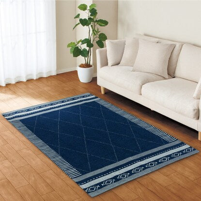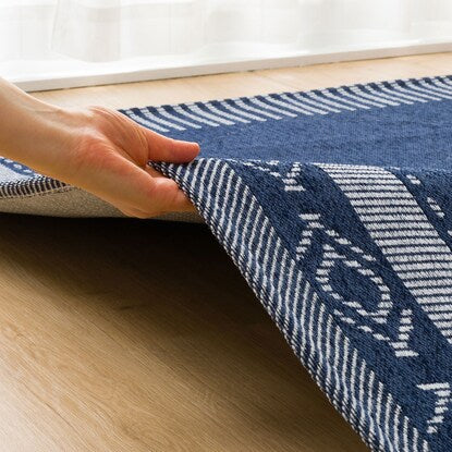 約1.5帖(130×185cm)さらっとした肌ざわりのジャガード織り 手洗いOK 床暖房・ホットカーペット対応 滑り止め加工(裏生地)■組成 表生地:ポリエステル100% 裏生地:不織布 ポリエステル70%、ポリプロピレン30% すべり止め 塩化ビニル樹脂 ※お取り扱い上のご注意 ご使用環境やご使用方法により塩化ビニル・フローリング等、床材の変色が起こることがあります。 このため、長期間敷いたままでのご使用はさけ、月に数回の陰干しをしてください。特に新築の床材・ワックス掛け後は、ご注意ください。 開封直後は素材特有のにおいがあります。気になる場合は、風通しの良い場所で半日ほど陰干しをおこなってください。においが軽減されます。 パッケージの形状でしばらくは折りじわが発生します。2~3日程度でなじみますが、つまずき等の転倒にご注意ください。 床暖房の種類によっては、ご使用いただけない場合があります。お使いの床暖房の取扱説明書をご確認ください。 場合によっては製品・床材の変色など起こることがあります。長時間敷いたままでのご使用はさけてください。