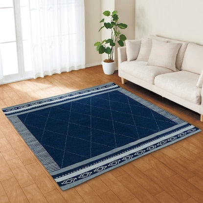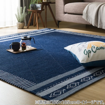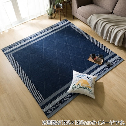約2.2帖(185×185cm)さらっとした肌ざわりのジャガード織り 手洗いOK 床暖房・ホットカーペット対応 滑り止め加工(裏生地)■組成 表生地:ポリエステル100% 裏生地:不織布 ポリエステル70%、ポリプロピレン30% すべり止め 塩化ビニル樹脂 ※お取り扱い上のご注意 ご使用環境やご使用方法により塩化ビニル・フローリング等、床材の変色が起こることがあります。 このため、長期間敷いたままでのご使用はさけ、月に数回の陰干しをしてください。特に新築の床材・ワックス掛け後は、ご注意ください。 開封直後は素材特有のにおいがあります。気になる場合は、風通しの良い場所で半日ほど陰干しをおこなってください。においが軽減されます。 パッケージの形状でしばらくは折りじわが発生します。2~3日程度でなじみますが、つまずき等の転倒にご注意ください。 床暖房の種類によっては、ご使用いただけない場合があります。お使いの床暖房の取扱説明書をご確認ください。 場合によっては製品・床材の変色など起こることがあります。長時間敷いたままでのご使用はさけてください。