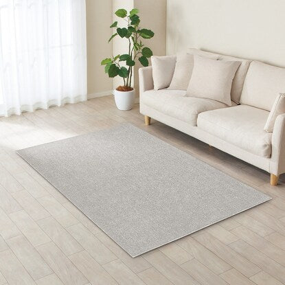 ポイント1 埋もれそうなほど ふかふか! ボリュームがあって心地よい ふかふかだけど、さらっとした触り心地。冬は暖かく、夏はサラサラとしていて1年中使うことができます。毛足も長すぎず、短すぎずでからまりにくく、掃除機もかけやすい。 ポイント2 床暖房・ ホットカーペット対応 床暖房・ホットカーペットにも対応!寒い冬でも素足で歩いて、ぽかぽか暖かく、気持ち良い。 ※画像はイメージです。 約1.5帖(約130×185cm)ふんわりやわらか 一年中使えるシャギーラグ 床暖房・ホットカーペット対応■組成 表生地:ポリエステル100% 裏生地:不織布ポリエステル100% ヘム(ふち):ポリエステル100%■洗濯機OK ※お取り扱い上のご注意 このカーペット・ラグは、洗濯ができます。洗濯機の容量は10㎏以上を目安にご使用ください。 ご使用環境やご使用方法により塩化ビニル・フローリング等、床材の変色が起こることがあります。 このため、長期間敷いたままでのご使用はさけ、月に数回の陰干しをしてください。特に新築の床材・ワックス掛け後はご注意ください。 開封直後は素材特有のにおいがあります。気になる場合は、風通しの良い場所で半日ほど陰干しをおこなってください。においが軽減されます。 パッケージの形状でしばらくは折りじわが発生します。2~3日程度でなじみますが、つまずき等の転倒にご注意ください。 床暖房の種類によっては、ご使用いただけない場合があります。お使いの床暖房の取扱説明書をご確認ください。場合によっては製品・床材の変色など起こることがあります。長時間敷いたままでのご使用はさけてください。