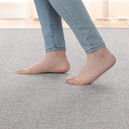 お部屋をスッキリとスタイリッシュに見せるヘリンボーン柄のラグ。ジャガード織りで高級感もあります。さらっとした肌ざわりです。充填物にはウレタンフォームが入っていて、クッション性があります。黄色ブドウ球菌など特定の菌の繁殖を抑制することで臭いの発生を抑えます。
