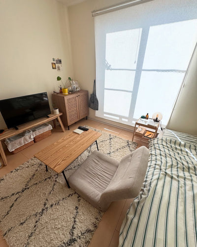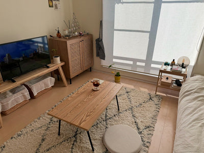 フローリング等のすべりやすい床の上ではラグ(カーペット)自体がすべり、転倒するおそれがあります。すべり止めシートをご使用ください。
