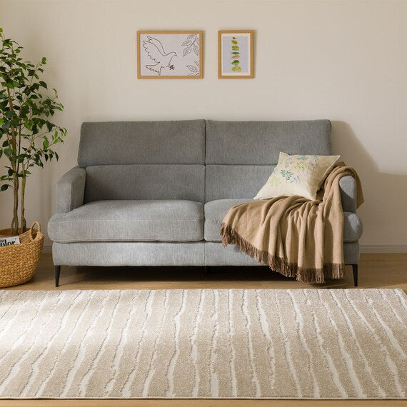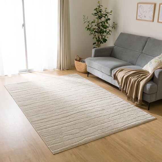 ポリプロピレン100%のパイルが特徴のラグです。淡色でお部屋の雰囲気を明るくし、ちょっとした柄がおしゃれな空間を演出します。床暖房やホットカーペットにも対応しています。