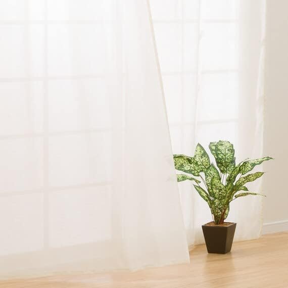 丈の長さを調節できる、アジャスターフック付きのレースカーテンです。紫外線UVカット67%で日中の光を防ぎます。洗濯機で洗えるので衛生的に使用できます。