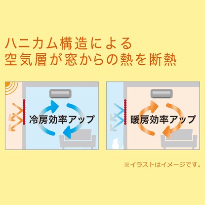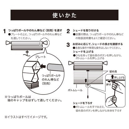 ハニカム構造による空気層が窓からの熱を断熱保温効果26%■材質 シェード:ポリエステル ボトムレール:塩化ビニル樹脂■重量:約0.14㎏※本品はつっぱりポールやのれん棒(別売品)と併せて使用するシェードです。