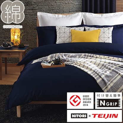 ※画像・イラストはイメージです。 シングルサイズ【NITORI×TEIJIN】美しい光沢がある高密度綿サテン生地を使用しています。 やわらかくなめらかな肌ざわりが特徴です。 付け替え簡単!ひもなしらくらくNグリップ 出し入れ簡単全開ファスナー スリット付き■打ち込み本数:400本 ※「打ち込み本数」とは、1インチ(2.54cm) 四方の「たて糸」「よこ糸」の合計本数のことです。 数値が多いほど、細い糸を使っているので、生地が柔らかく、きめ細かい生地になります。 250本以上のものを高密度な生地といいます。■組成 側生地:綿100% 滑りにくい部分(内側):ポリエステル100%■洗濯機OKこちらは掛けふとんカバーのみの販売です。