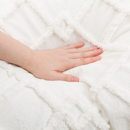表面のタフトで描いた幾何学模様が特徴。