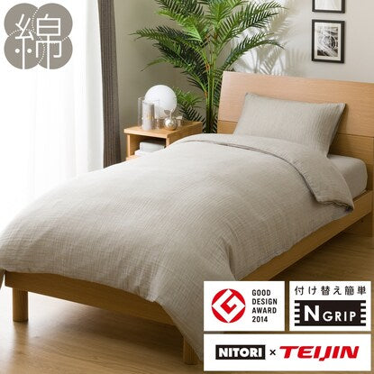 ひもなしラクラク掛け布団カバー シングル(Nグリップ ガーゼSZ32 GY S)