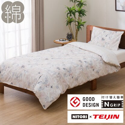 ひもなしラクラク掛け布団カバー シングル(Nグリップ PT33 フラワー GY S)