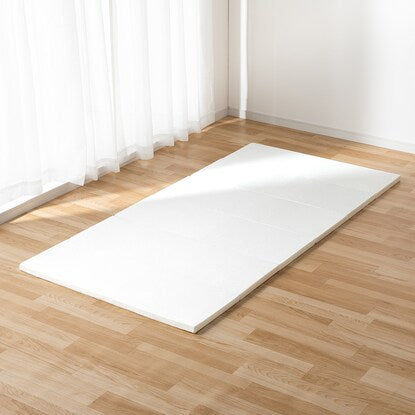 従来のマットレスの半分の接地面積で収納可能。硬質タイプで敷布団の下に敷くのがおすすめです。