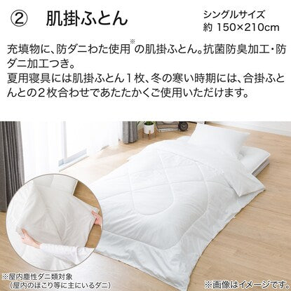 充填物に、防ダニわた使用※の肌掛ふとん。抗菌防臭加工・防ダニ加工つき。