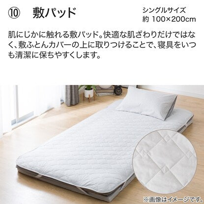 肌にじかに触れる敷パッド。快適な肌ざわりだけではなく、敷ふとんカバーの上に取りつけることで、寝具をいつも清潔に保ちやすくします。