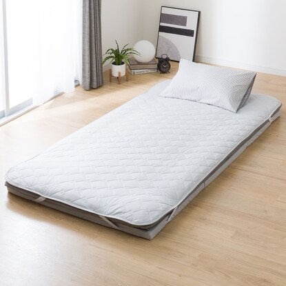 収納にも便利な、コンパクトに3つ折りになるマットレス。充填物にウレタンフォーム入り。敷ふとんの下に敷くことで、底つき感なくふかふか感アップ。寝心地も各段にアップします。