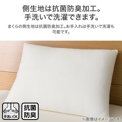 まくらの側生地は抗菌防臭加工。お手入れは手洗いで洗濯も可能です。