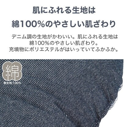 デニム調の生地がかわいい。肌にふれる生地は綿100%のやさしい肌ざわり。