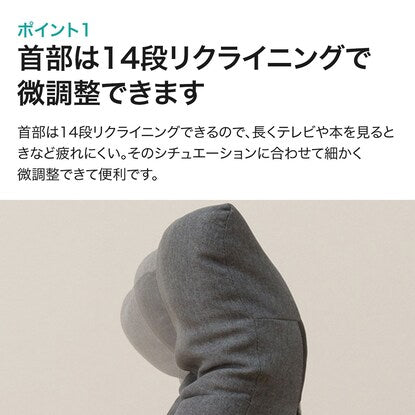 首部は14段リクライニングできるので、長くテレビや本を見るときなど疲れにくい。そのシチュエーションに合わせて細かく微調整できて便利です。