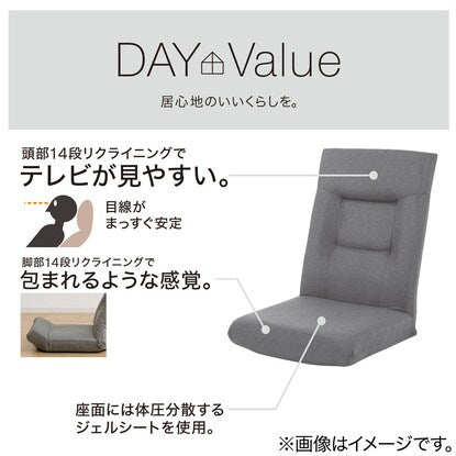 首も足も好きな角度に調整 凹みのある背もたれでゆったり 6段リクライニング 頭部14段リクライニングでテレビが見やすい 目線がまっすぐ安定 脚部14段リクライニングで包まれるような感覚 座面には体圧分散するジェルシートを使用