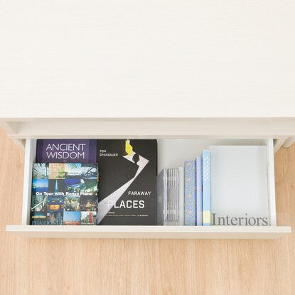 DVDやCDなどをたっぷり目隠し収納できる引出し付きです。