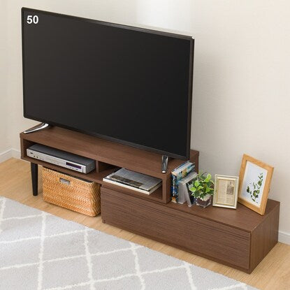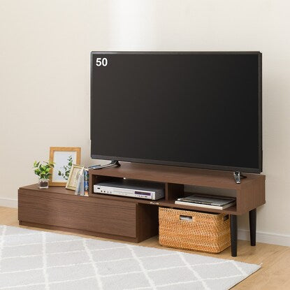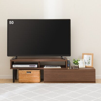 ※実際のサイズ・色・構造 等を保証するものではありません ARについての詳細はこちらお部屋に合わせてレイアウトフリー。伸長可能なローボードです。 置きたいスペースに合わせて幅調整やL字配置など、レイアウトが自在。 コーナーにも設置できます。 DVDやCDなどをたっぷり目隠し収納できる引出し付きです。※イメージ画像の場合、使用している小物等は演出品です。