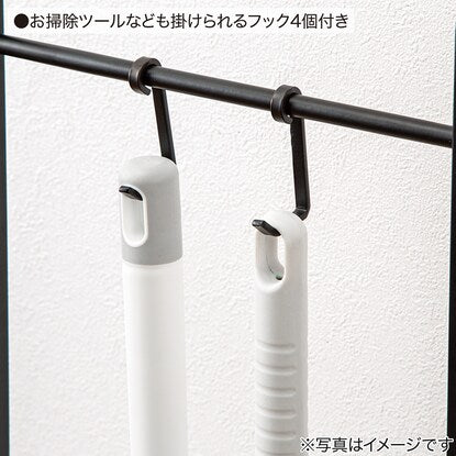 折りたたみ傘やお掃除ツール、小物なども掛けられるフック4個付き