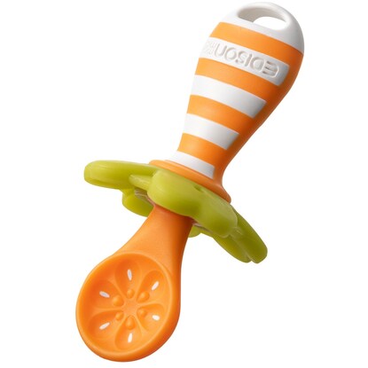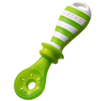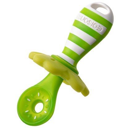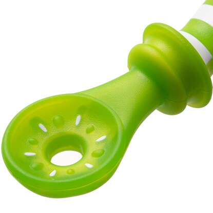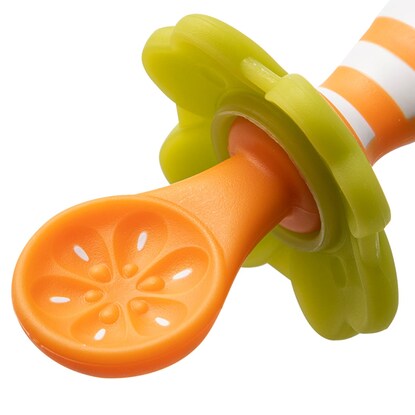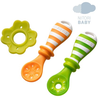 離乳食をはじめるころのお子様に やわらか素材だから噛んでも安心 オレンジのスプーンは果汁・10倍がゆなどの離乳食がデコボコ果肉形状にしっかり絡む キウイのスプーンはディップするだけでヨーグルトなどが穴にうもれいっぱい絡む 脱着できる四つ葉のキャッチャーが垂れてきた離乳食をキャッチしてくれる テーブルに置いたら必ずスプーン先端が浮くので衛生的 ※軽く伸ばしながらセットしてください。オレンジとキウイ兼用で使えます。本体:ポリプロピレン、熱可塑性エラストマー 四つ葉のキャッチャー:熱可塑性エラストマー【耐熱温度】 120℃【お手入れについて】 薬液消毒:可 ※ベビー用専用消毒液を使用してください。 煮沸・消毒:可 ※過度の煮沸は製品を傷める場合がありますのでお気を付けください。 電子レンジ消毒:使用可 磨き粉・たわし:不可【その他仕様】 直火:使用不可 オーブン:使用不可 食洗機:使用可【取り扱い上のご注意】 お子様は予想外の行動をとることがありますので、必ず保護者や指導者の目の届くところでご使用ください。 持ったまま転ぶと、目やのどに当たり、思わぬケガをする場合がありますのでお気を付けください。 誤って飲み込む可能性がありますので、特に小さなお子様がご使用の際は、飲み込み防止のひもを穴に通して結ぶなどしてください。 ヨーグルトなどの食材をお召し上がりの際は、よくかき混ぜて頂くと、より絡みやすくなります。 傷や破損、亀裂などが生じた場合は、すぐに使用を中止してください。強く噛み切ると製品が裂けて飲み込むおそれがあります。万一飲み込んだ場合は、お近くの病院や医師にご相談ください。 長時間日光に当てたり果汁につけると劣化や変色の原因となりますのでお避けください。