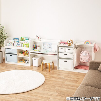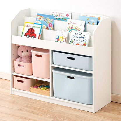 下段は高さを変えられるので大きな絵本やファイル、小物も片付けられます