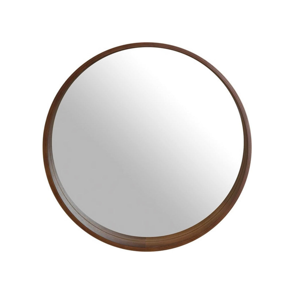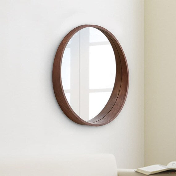 ナチュラル・モダンなウォールミラーです。天然ウォールナット材の突板でナチュラルな風合いが魅力です。フレームのデザインが特徴的で、モダンなスタイルです。