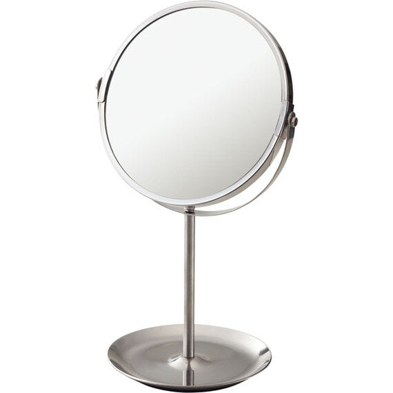 等倍鏡と3倍鏡の両面仕様の卓上ミラーです。くるっと返せばフェイスケアやアイメイクにも便利です。メイク道具や小物を置けるトレー付きで、メイクも捗ります。