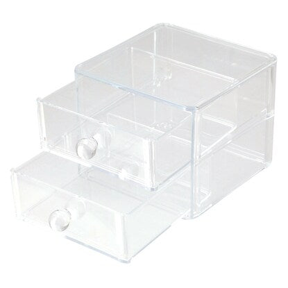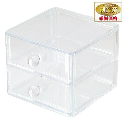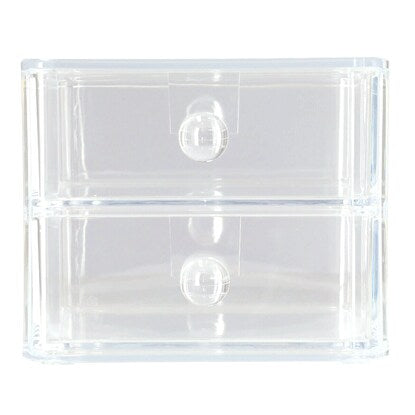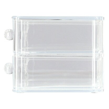 2段の引き出しで、いつも使うコスメ小物をすっきり収納■サイズ(約):18×20×15cm ■材質:アクリル樹脂※本品に極細い線が入る場合がございますが、成型上さけられない跡で、傷ではありません。