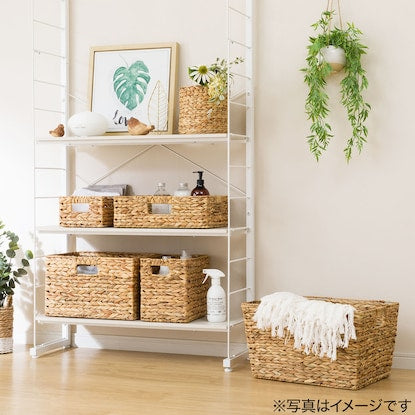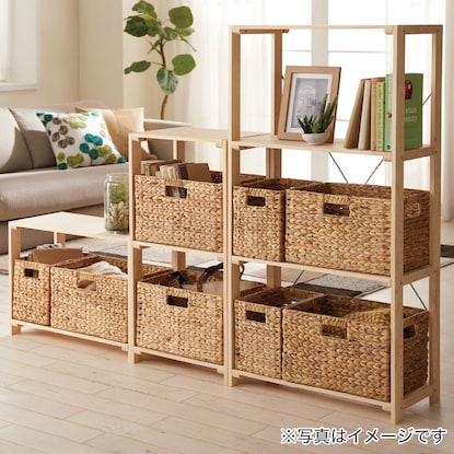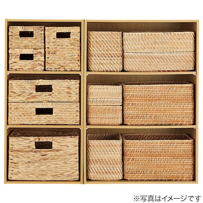 カラーボックス1段のよこ型ハーフサイズ 風合いのある天然素材でインテリアによくなじむ※天然素材を使用しているため、色や形、サイズにバラつきがある場合がございます。【取り扱い上のご注意】 火のそばに置かないでください。 ぬれた場合や強くこすった場合、クッションフロアに直置きした場合など、衣類や床に色移りすることがありますので、ご注意ください。 直射日光のあたる場所、高温多湿な場所で使用しないでください。変色や変形の原因になります。 水をかけたり、水洗いしないでください。 熱いものやぬれたもの、水分のあるものなどは入れないでください。 においが気になる場合は、風通しのよい場所で陰干ししてください。 壁紙や床の材質によってはワックス、薬品、湿気などの影響で接触箇所に色移りすることがあります。特にクッションフロアは色移りしやすいため、直置きはさけてご使用ください。 素材の切れ端やささくれなどが出ている場合がありますので、取り扱いにご注意ください。
