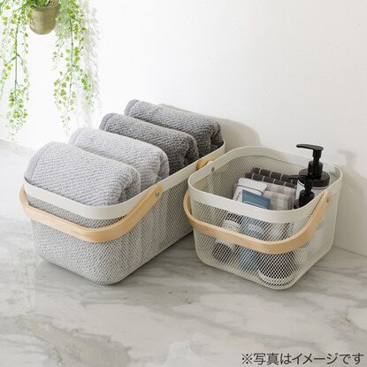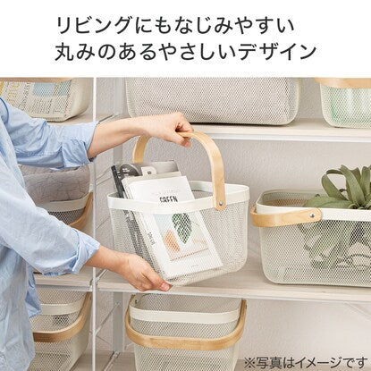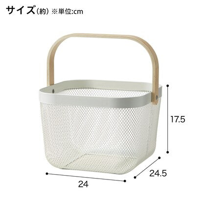 【サイズ(約)】 24×24.5×17.5cm(持ち手含まず)本体:スチール 持ち手:ベニヤ【お手入れ方法】 水洗いはしないでください。商品の汚れは、水で薄めた中性洗剤をやわらかい布に含ませ、固く絞ってよくふき取り、風通しの良い場所で陰干ししてください。 漂白剤やシンナー、ベンジンなどの薬品は使用しないでください。変色や色落ちの原因になります。【取り扱い上のご注意】 直射日光のあたる場所、高温多湿な場所でのご使用はお止めください。また、火に近づけたり、水をかけたりしないでください。変色・変形、カビの原因になります。 火気の近くでのご使用はお止めください。 熱いものやぬれたもの、水分のあるものは入れないでください。 壁紙や床の材質によってはワックス・湿気などの影響で接触箇所に色移りすることがあります。特にクッションフロアは色移りしやすいため、直置きはさけてご使用ください。 素材の切れ端やささくれなどが出ている場合がありますので、取り扱いにご注意ください。