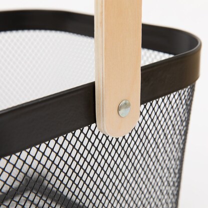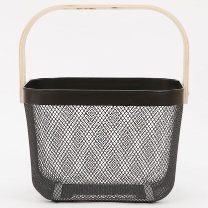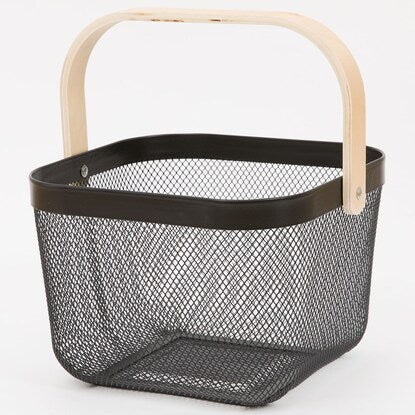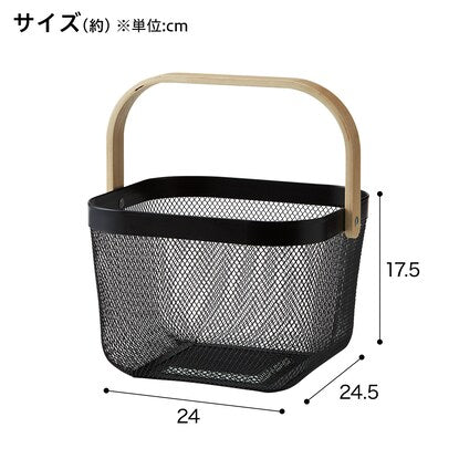 【サイズ(約)】 24×24.5×17.5cm(持ち手含まず)本体:スチール 持ち手:ベニヤ【お手入れ方法】 水洗いはしないでください。商品の汚れは、水で薄めた中性洗剤をやわらかい布に含ませ、固く絞ってよくふき取り、風通しの良い場所で陰干ししてください。 漂白剤やシンナー、ベンジンなどの薬品は使用しないでください。変色や色落ちの原因になります。【取り扱い上のご注意】 直射日光のあたる場所、高温多湿な場所でのご使用はお止めください。また、火に近づけたり、水をかけたりしないでください。変色・変形、カビの原因になります。 火気の近くでのご使用はお止めください。 熱いものやぬれたもの、水分のあるものは入れないでください。 壁紙や床の材質によってはワックス・湿気などの影響で接触箇所に色移りすることがあります。特にクッションフロアは色移りしやすいため、直置きはさけてご使用ください。 素材の切れ端やささくれなどが出ている場合がありますので、取り扱いにご注意ください。