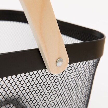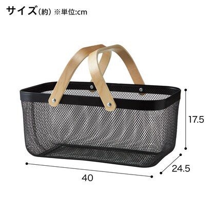 【サイズ(約)】 40×24.5×17.5cm(持ち手含まず)本体:スチール 持ち手:ベニヤ【お手入れ方法】 水洗いはしないでください。商品の汚れは、水で薄めた中性洗剤をやわらかい布に含ませ、固く絞ってよくふき取り、風通しの良い場所で陰干ししてください。 漂白剤やシンナー、ベンジンなどの薬品は使用しないでください。変色や色落ちの原因になります。【取り扱い上のご注意】 直射日光のあたる場所、高温多湿な場所でのご使用はお止めください。また、火に近づけたり、水をかけたりしないでください。変色・変形、カビの原因になります。 火気の近くでのご使用はお止めください。 熱いものやぬれたもの、水分のあるものは入れないでください。 壁紙や床の材質によってはワックス・湿気などの影響で接触箇所に色移りすることがあります。特にクッションフロアは色移りしやすいため、直置きはさけてご使用ください。 素材の切れ端やささくれなどが出ている場合がありますので、取り扱いにご注意ください。