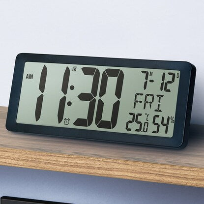 多機能なデジタル掛け置き兼用時計電波時計 カレンダー表示 温度・湿度表示 アラーム機能 止めてもまた鳴るスヌーズ機能・電池別売:単3×3個■サイズ(約) 掛けて使用時:幅36.7×奥行3.6×高さ15.6cm 置いて使用時:幅36.7×奥行9.6×高さ15.3 ■材質:ABS樹脂【電波時計とアナログクォーツ時計の切り替え機能】 電波受信状況が悪かったり、ノイズ電波を拾いやすい場合はアナログクォーツ時計機能に切り替えができます。 この場合、電波の誤受信による時間の狂いは発生しません。