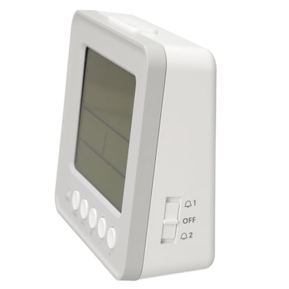 お部屋や好みに合わせてカラーを選べる コンパクトサイズでお部屋に馴染む 2つの時刻をアラーム設定できて平日・休日の使い分けに便利 ライト付き カレンダー表示 温度・湿度表示【使用電池】 単3×2個(別売品) ※充電式電池は使用できません。幅9.5×奥行4×高さ9cmABS樹脂【電波時計について】 電波受信状況が悪かったり、ノイズ電波を拾いやすい場合はアナログクォーツ時計機能に切り替えができます。この場合、電波の誤受信による時間の狂いは発生しません。 離島、または鉄筋、鉄骨の建物の中及び周辺、高圧線・架線の周辺、山の裏側、乗り物の中、電波障害のある場所、家庭用電化製品・OA機器のそばなどでは受信されない、受信しにくい場所があります。窓側などの電波を受けやすい場所でご使用ください。