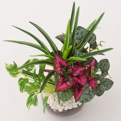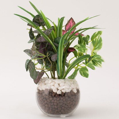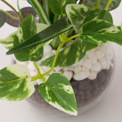 フェイクグリーン 寄せ植え ガラスポット(グリーンヨセウエ ガラスポット2ソウ)