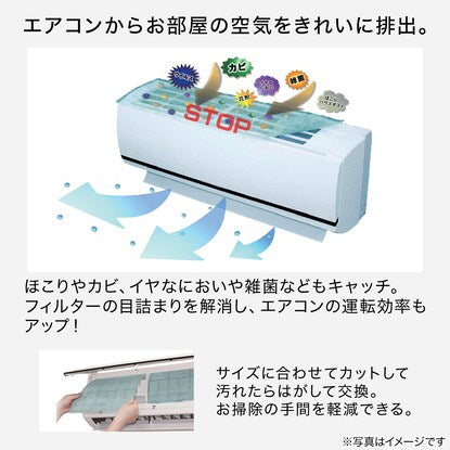 エアコンからお部屋の空気をきれいに排出 抗ウイルス・抗菌・抗カビ・消臭、4つの効果で空気をキレイに ほこりやカビ、イヤなにおいや雑菌などもキャッチ フィルターの目詰まりを解消し、エアコンの運転効率もアップ お掃除の手間を軽減できる サイズに合わせてカットして汚れたらはがして交換 エアコン以外の様々な製品の空気吸入口にご使用可能です。 ※除湿器、空気清浄機、冷風扇、タワースリムファンなど 使い捨てタイプ 取付用固定テープ16片入り【枚数】 2枚入40×80cm ※自由にカットできます。
