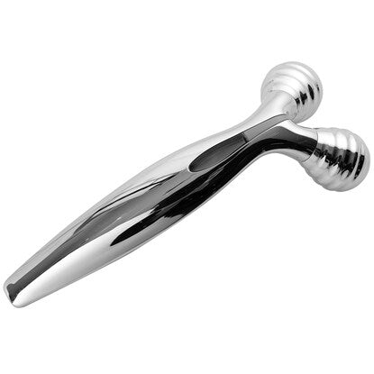ハンドルを持ち、ローラーを肌にあて、転がす