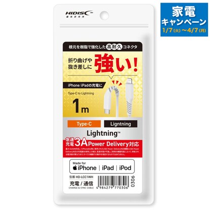 PD対応断線に強いライトニングケーブル 1m(HD-LCC1WH)