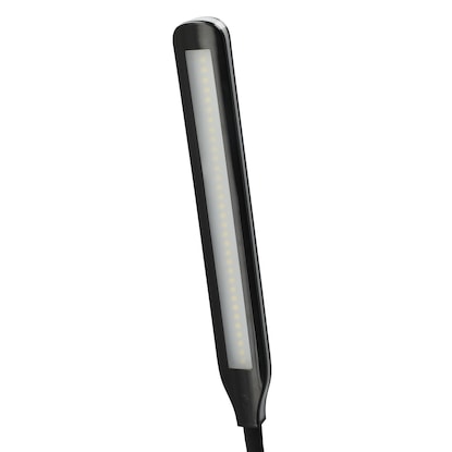 スリムで長い発光面が広範囲を明るく照らす 明るさ:直下照度約1800 lux(直下35cm) 様々な方向に動かせるアーム式 3段階明るさ調節 ヘッド部分も回転するので、照射角度も細やかに調節できます【仕様】 質量(約):0.28kg(コード・アダプター含まず) コード長さ(約):2m 定格入力電圧:AC100V 定格周波数:50Hz/60Hz 入力電ある・電流:DC18.5V 0.38A 定格消費電力:7.5W 調光段数:3段階 固有エネルギー消費効率:82.6 lm/W 全光束(約):620 lm 色温度:5500~6500K(昼光色) LED光源寿命:40,000時間 ※LED光源寿命は、点灯しなくなるまでの総点灯時間または、全光束が点灯初期の70%に下がるまでの総点灯時間のいずれかの短い時間を推定したものです。製品寿命を保証するものではありません。製品寿命は使用状況により異なります。