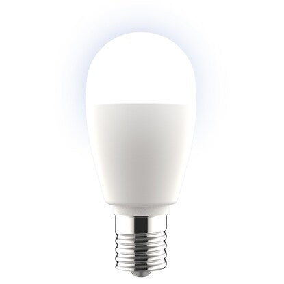 昼白色相当 E17口金 25形相当【仕様】 屋内用 交流100V 50Hz/60Hz共用 寸法(約):全長75×最大径35mm 配光角度(約):180℃(広配光タイプ) 明るさ(全光束):320 lm 定格消費電力:2.1W エネルギー消費効率:153.3 lm/W 定格入力電流:35mA 設計寿命:約40,000時間 ※寿命は全光束が70%まで低下するまでの時間です。表示は設計寿命であり、 製品の寿命を保証するものではありません。【次のような器具には使用できません】 調光(明るさ調整できる)機能のついた器具や回路(100%点灯でも使用不可) リモコンのついた電球器具や回路(適合表示器具を除く) 誘導灯、非常用照明器具 水銀灯、ナトリウムランプ、メタルハライドランプなどのHIDランプ器具 断熱材施工器具[SB、SGI、SG形表示器具](適合表示器具を除く) ※このほか器具の形状や寸法、熱がこもるなどの要因により、使用できなかったり寿命が短くなる場合があります。【取り扱い上のご注意】 直流電流では絶対に使用しないでください。 水滴などがかかる場所や湿度が高い場所では使用しないでください。 点滅を頻繁に繰り返す場所(人感センサーで点滅をおこなう場所など)では、ランプの寿命が短くなったりする場合があります。 器具で指定されたワット数以下のランプを使用してください。 ランプ周囲温度が、0℃~40℃の範囲で使用してください。 ラジオやテレビなどの音響、映像機器の近くで点灯すると、雑音が入ることがあります。また、無線を使用した電子機器によっては、正しく作動しなくなることがあります。(このような場合はランプから1m以上離して使用してください) 赤外線リモコンを使用した機器(テレビやエアコンなど)の近くで使用すると、リモコンが誤作動することがあります。 LED素子には光色、明るさともにバラつきがあるため、同じ形名の商品でも光色、明るさが異なることがあります。