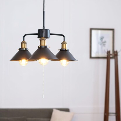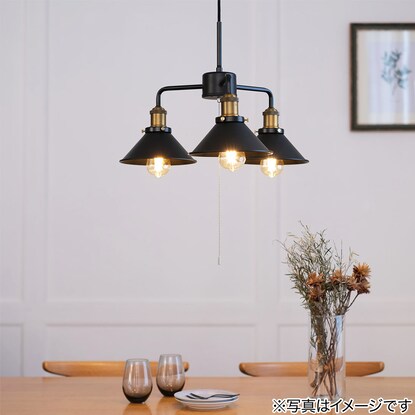 ※実際のサイズ・色・構造 等を保証するものではありません ARについての詳細はこちらダイニングにおすすめ 明るさを調節できるプルコードスイッチ式【電球別売】 白熱電球(E26口金/明るさ 40W相当以下)×3個 ※LED電球、電球型蛍光灯も使えます。幅50.5×奥行46×高さ35cm (コード・シーリングカバー含まず)【コード長さ(約)】 0.85m【使用光源の定格消費電力】 白熱電球:40W×3 電球型蛍光灯:21W×3 LED電球:13W×3【取り付けできる配線器具】 引掛シーリング:出しろ22mm(角型/丸型) 引掛埋め込みローゼット:出しろ11mm(ハンガーあり/なし) ※取り付ける配線器具の「出しろ」の長さを確認してください。【取り付けできない場所】 突出部のある天井 凸凹のある天井 たわみやすい天井 傾斜した天井 合板など補強のない薄い天井 ※火災、落下によるけがの原因になります。<コード調整の仕方>