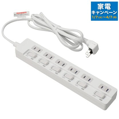 6個口節電タップ(2m PJE2-6M ホワイト)